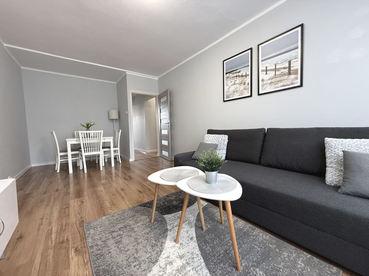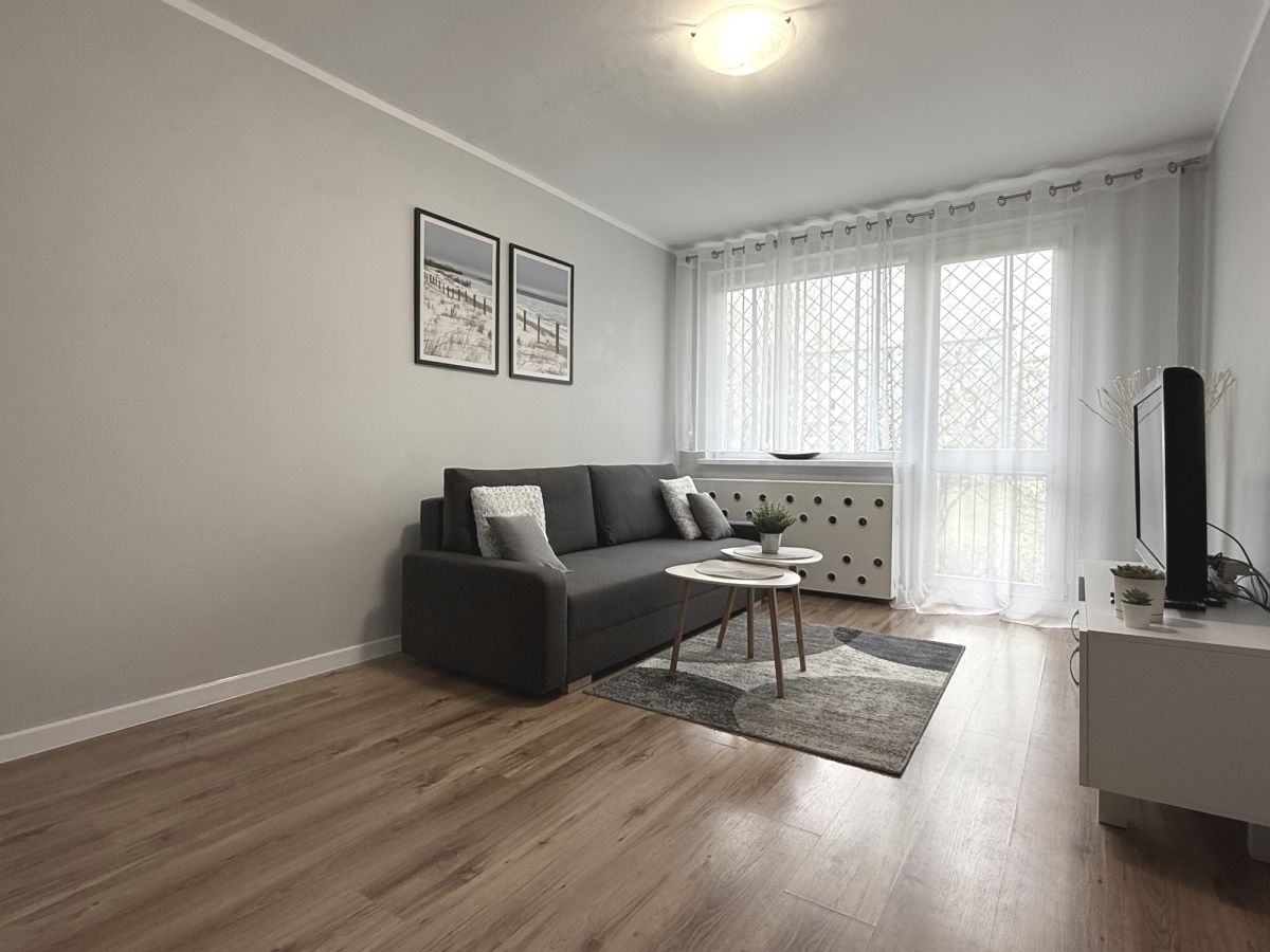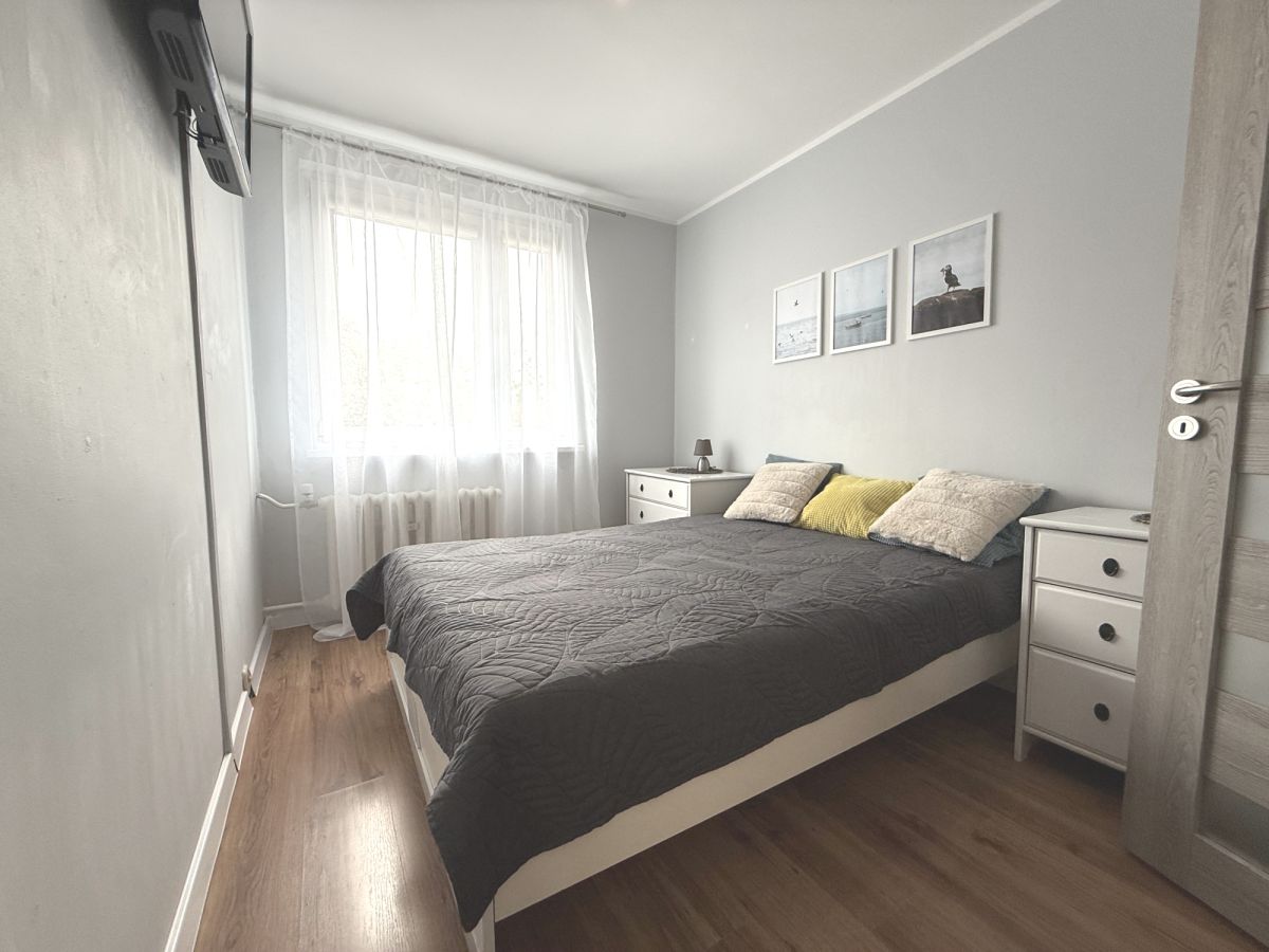Mieszkanie składa się z przytulnego salonu z balkonem, sypialni z wygodnym łóżkiem, w pełni wyposażonej kuchni, łazienki z prysznicem oraz przedpokoju z dużą szafą. Do mieszkania należy piwnica.