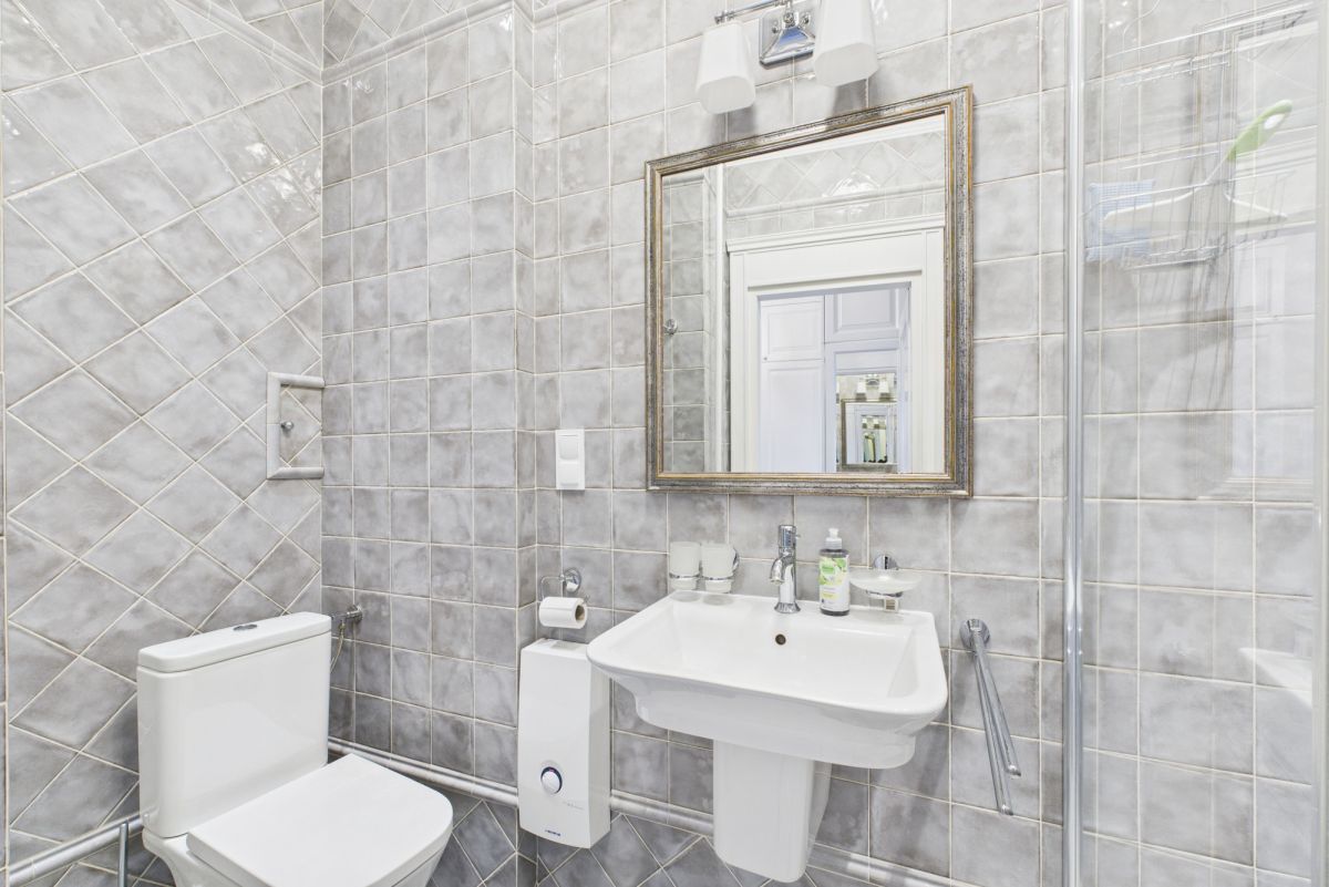 Łazienka z wygodnym prysznicem i zabudowaną pralką. Piękna kuchnia z oknem, dużą ilością blatów, z kuchenką z palnikami gazowymi, z dużą lodówką, stoliczkiem śniadaniowym i efektownym oświetleniem. W przedpokoju funkcjonalna zabudowa.