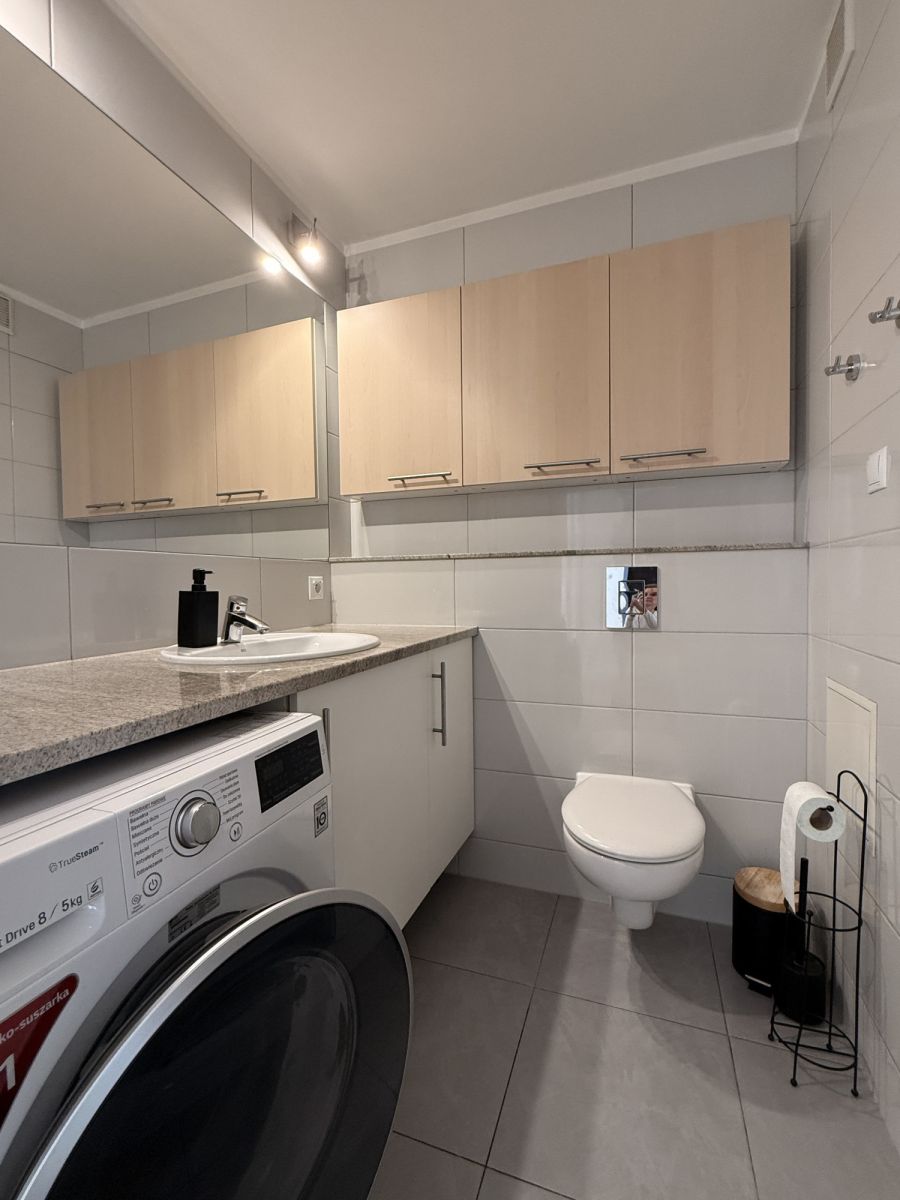 Mieszkanie jest czyste, zadbane i jasne. Składa się z dwóch sypialni, samodzielnego, zamykanego salonu, dużej w pełni wyposażonej kuchni ze stołem jadalnianym oraz łazienki z dużym prysznicem i pralko-suszarką.