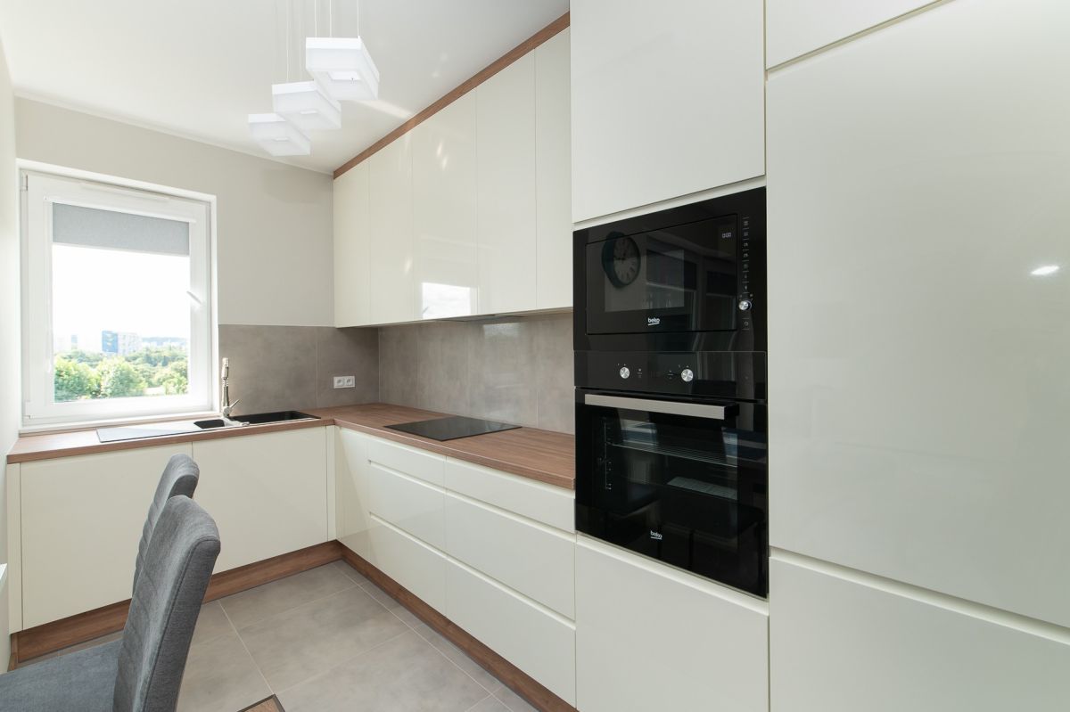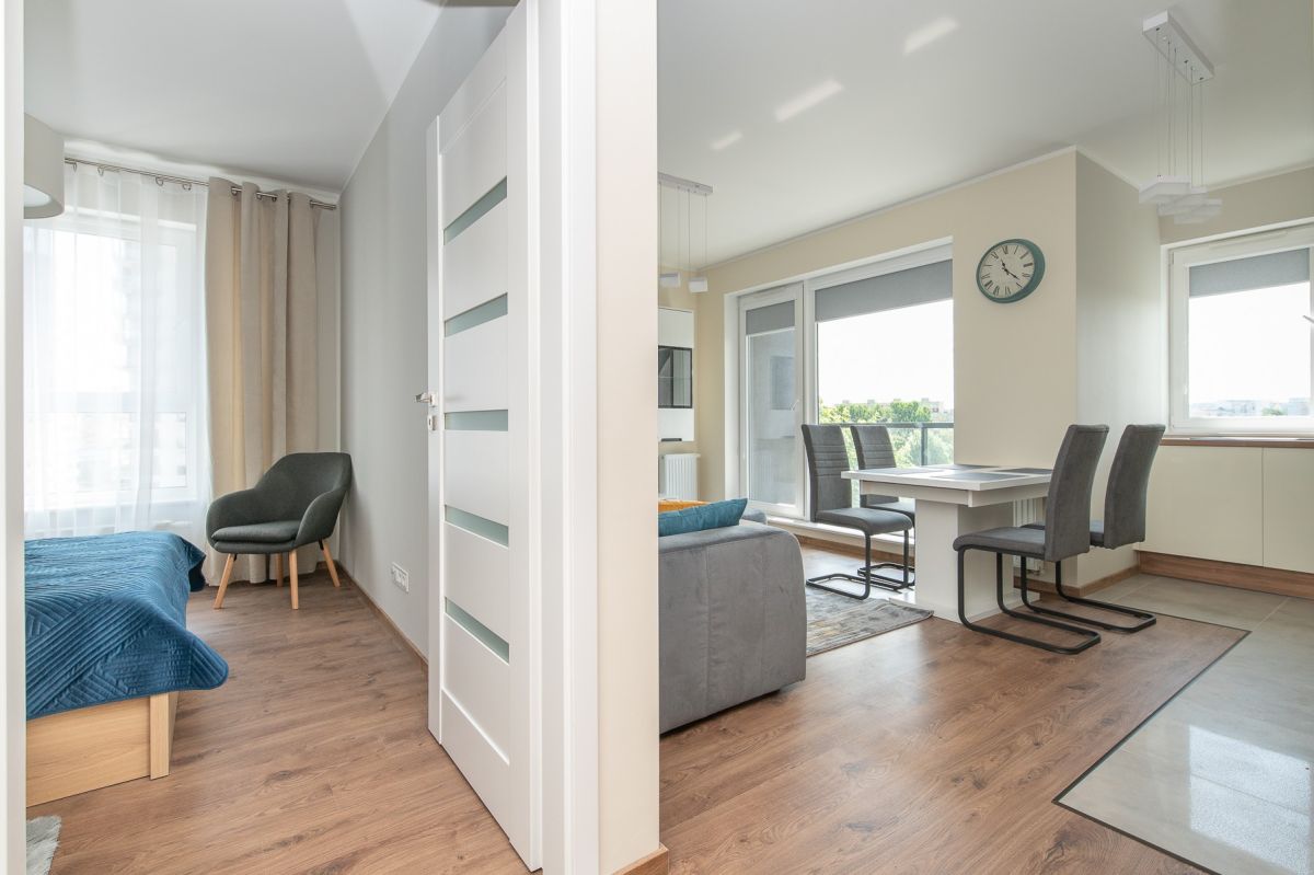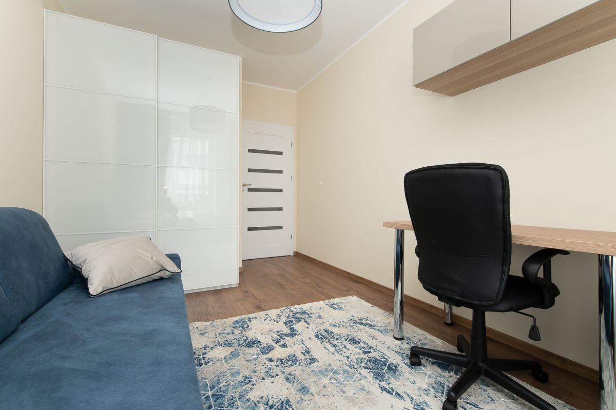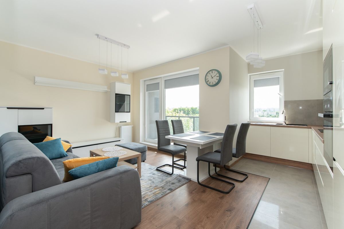 Bardzo ładne mieszkanie w świetnej lokalizacji - funkcjonalnie zaaranżowane i wyposażony lokal z balkonem na 6. piętrze na osiedlu Mezzo na Gdańskim Przymorzu. Estetyczne wykończenie, wygodne zabudowy, ciekawe oświetlenie pomieszczeń. Salon z aneksem kuchennym, wygodna sypialnia, mniejszy pokój dla dzieci (gości, do pracy) i spora łazienka. Pełne wyposażenie kuchni i łazienki w sprzęty AGD. W sypialni podwójne łóżko i szafa. W małym pokoju jest szafa i małe biurko z fotelem oraz aktualnie dziecięce łóżko piętrowe (można je usunąć - pozostało po poprzednich najemcach). W łazience prysznic i pralka. Wygodny przedpokój z zabudową.