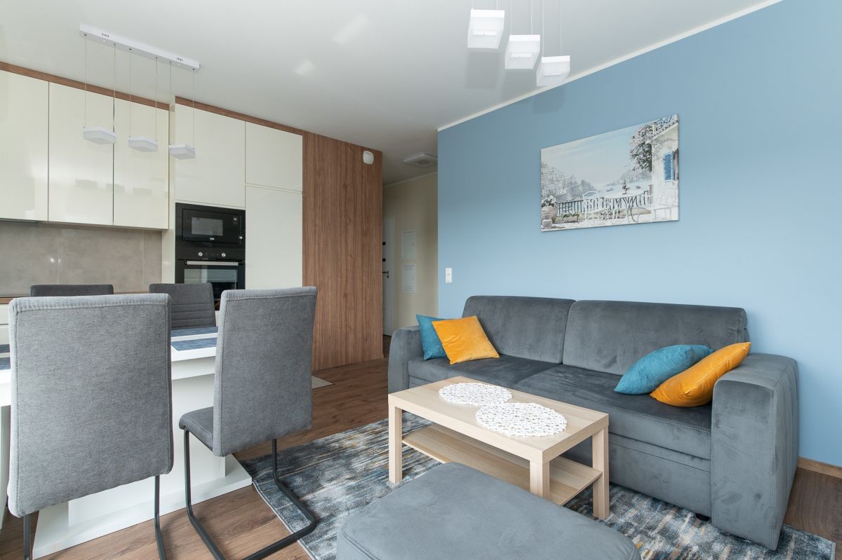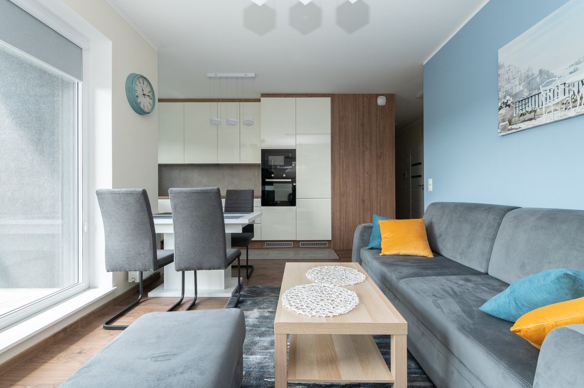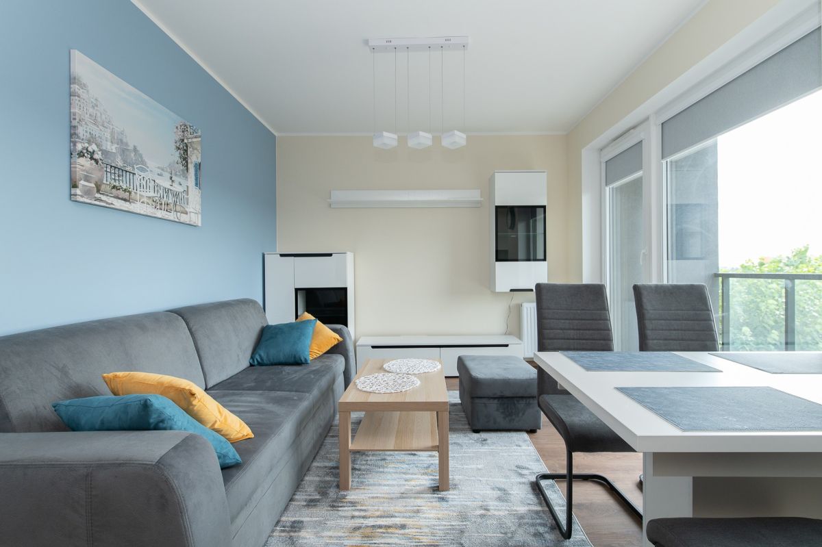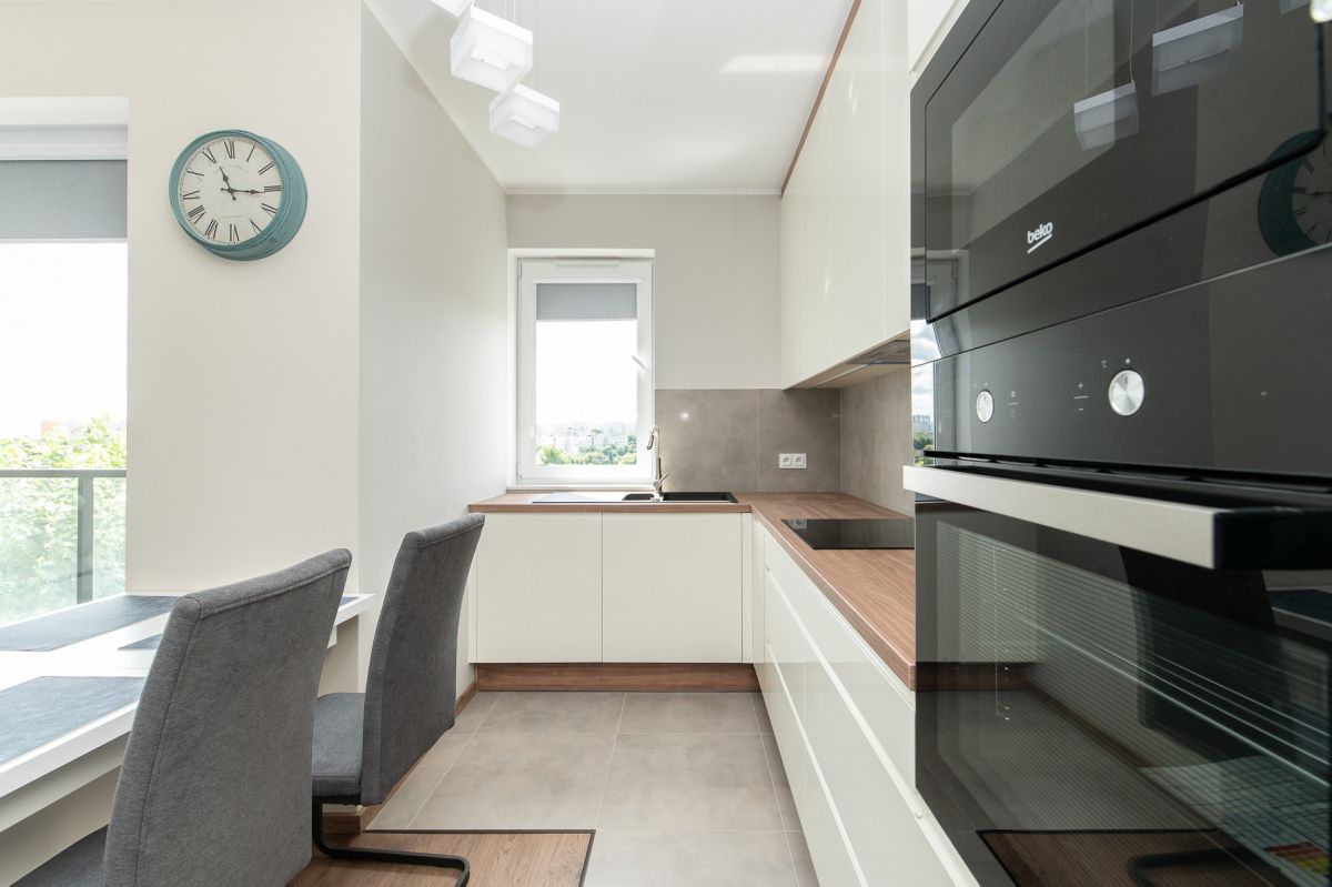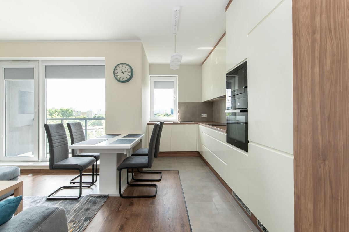 Bardzo ładne mieszkanie w świetnej lokalizacji - funkcjonalnie zaaranżowane i wyposażony lokal z balkonem na 6. piętrze na osiedlu Mezzo na Gdańskim Przymorzu. Estetyczne wykończenie, wygodne zabudowy, ciekawe oświetlenie pomieszczeń. Salon z aneksem kuchennym, wygodna sypialnia, mniejszy pokój dla dzieci (gości, do pracy) i spora łazienka. Pełne wyposażenie kuchni i łazienki w sprzęty AGD. W sypialni podwójne łóżko i szafa. W małym pokoju jest szafa i małe biurko z fotelem oraz aktualnie dziecięce łóżko piętrowe (można je usunąć - pozostało po poprzednich najemcach). W łazience prysznic i pralka. Wygodny przedpokój z zabudową.